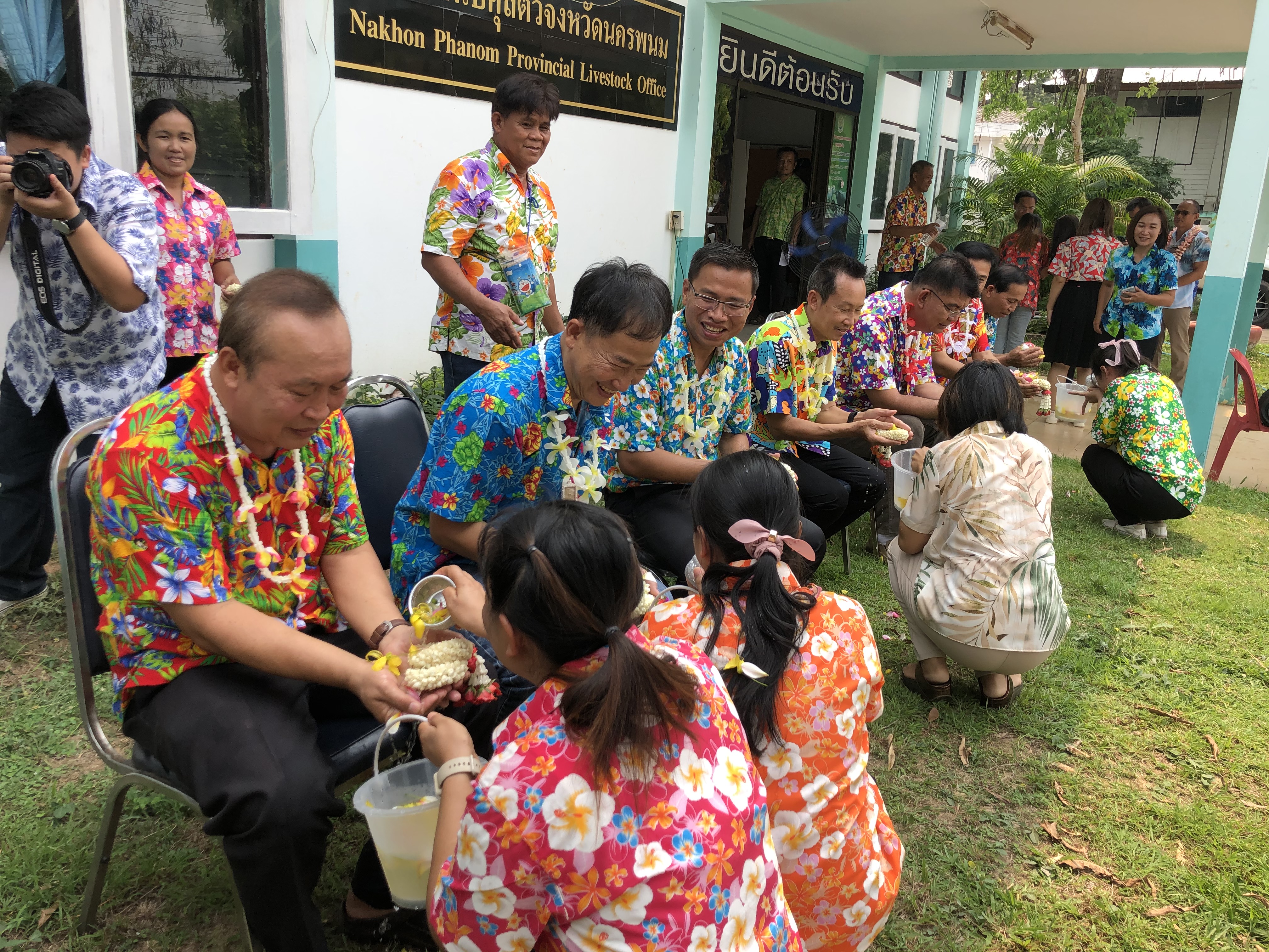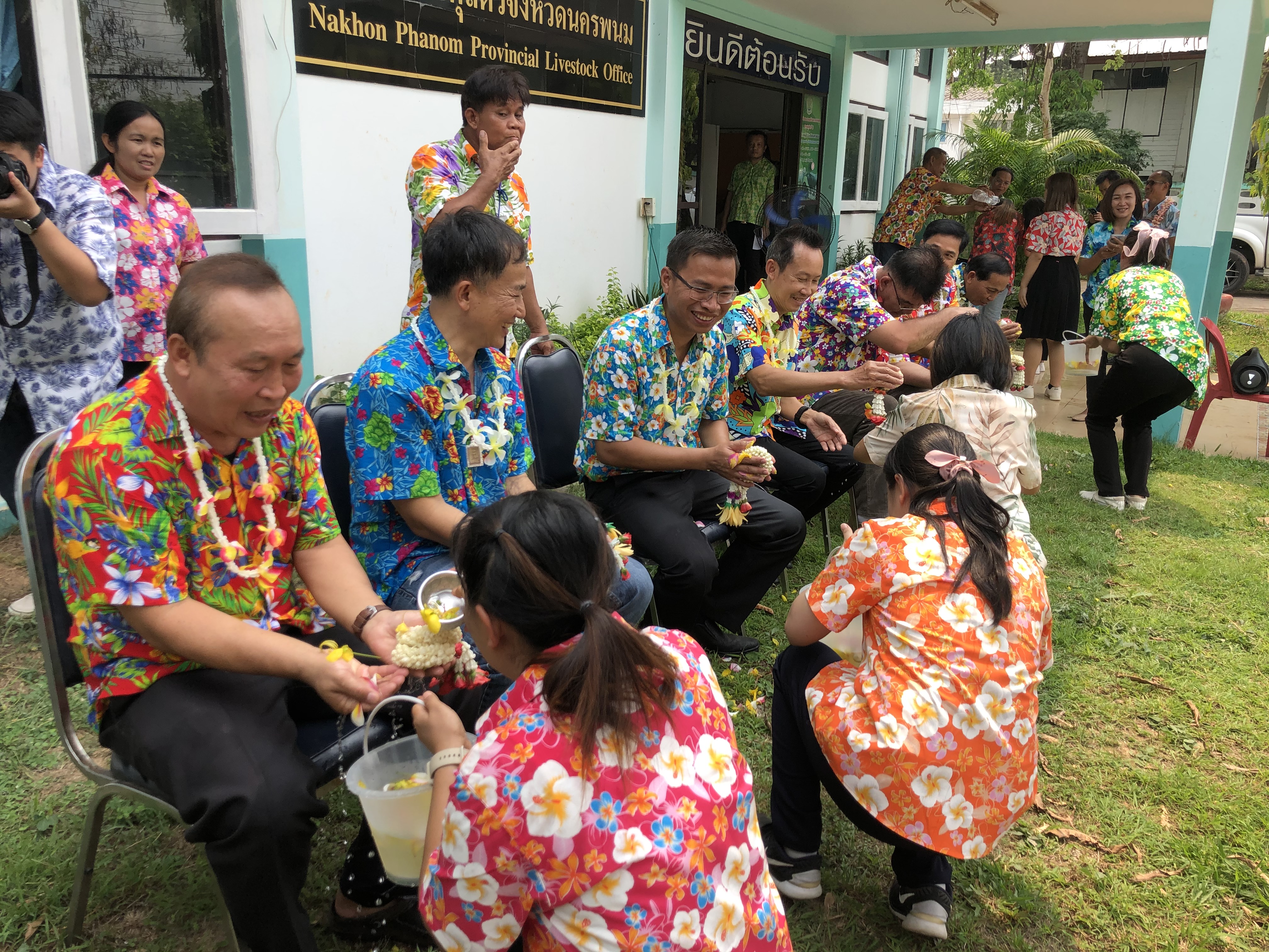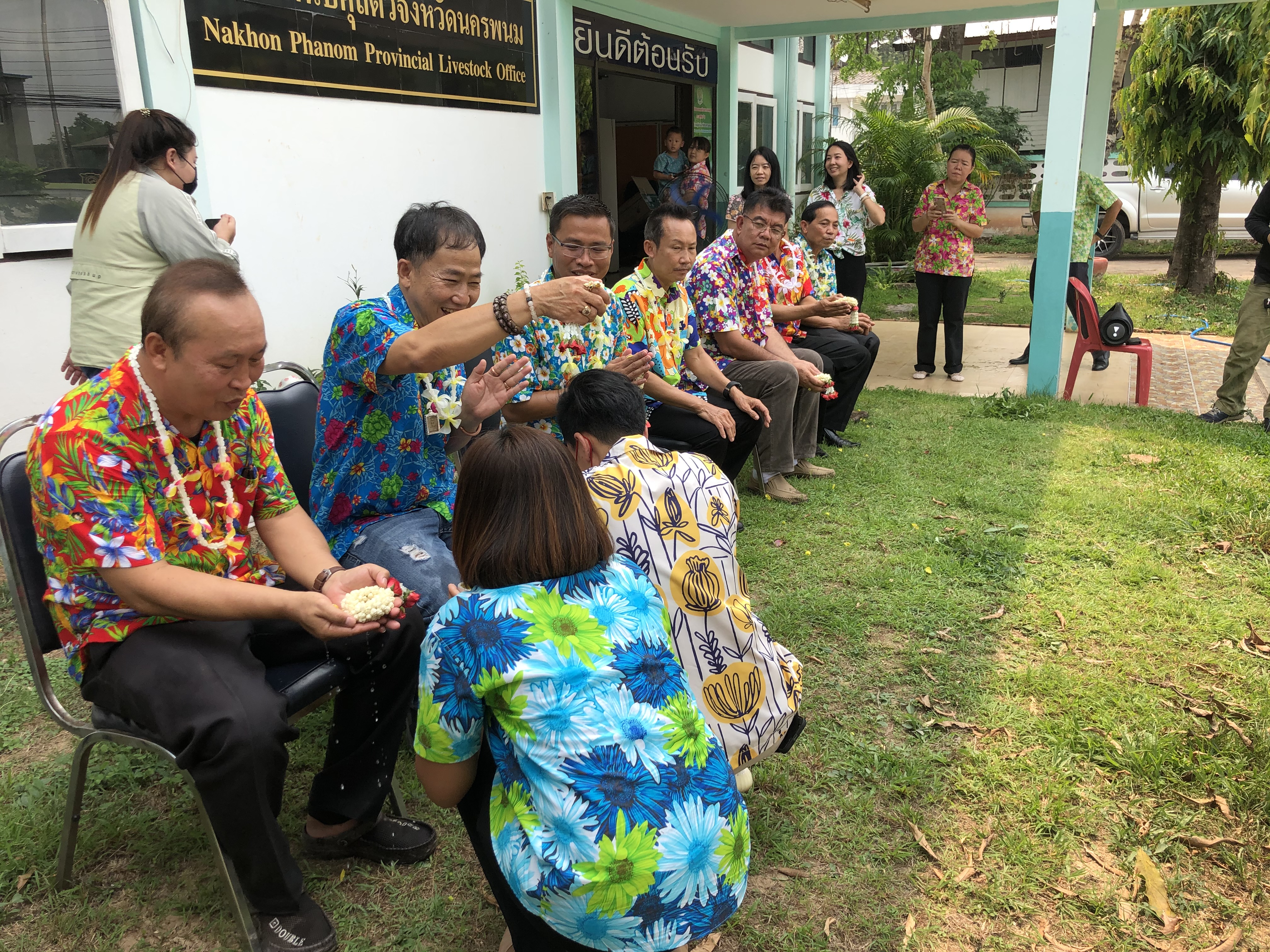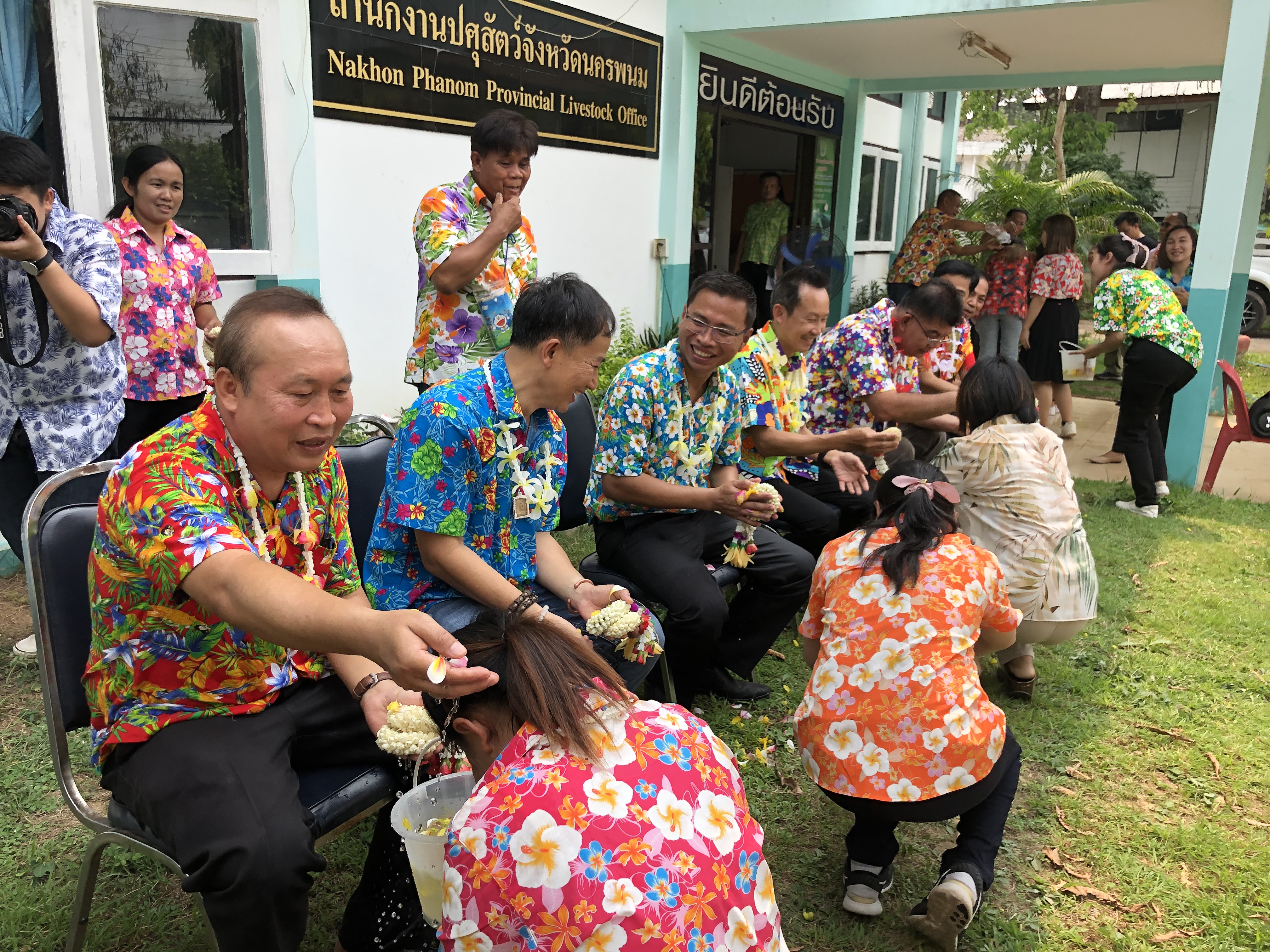 "ปศุสัตว์นครพนม นำบุคลากรรดน้ำขอพรผู้อาวุโส สืบสานสงกรานต์วิถีไทย"