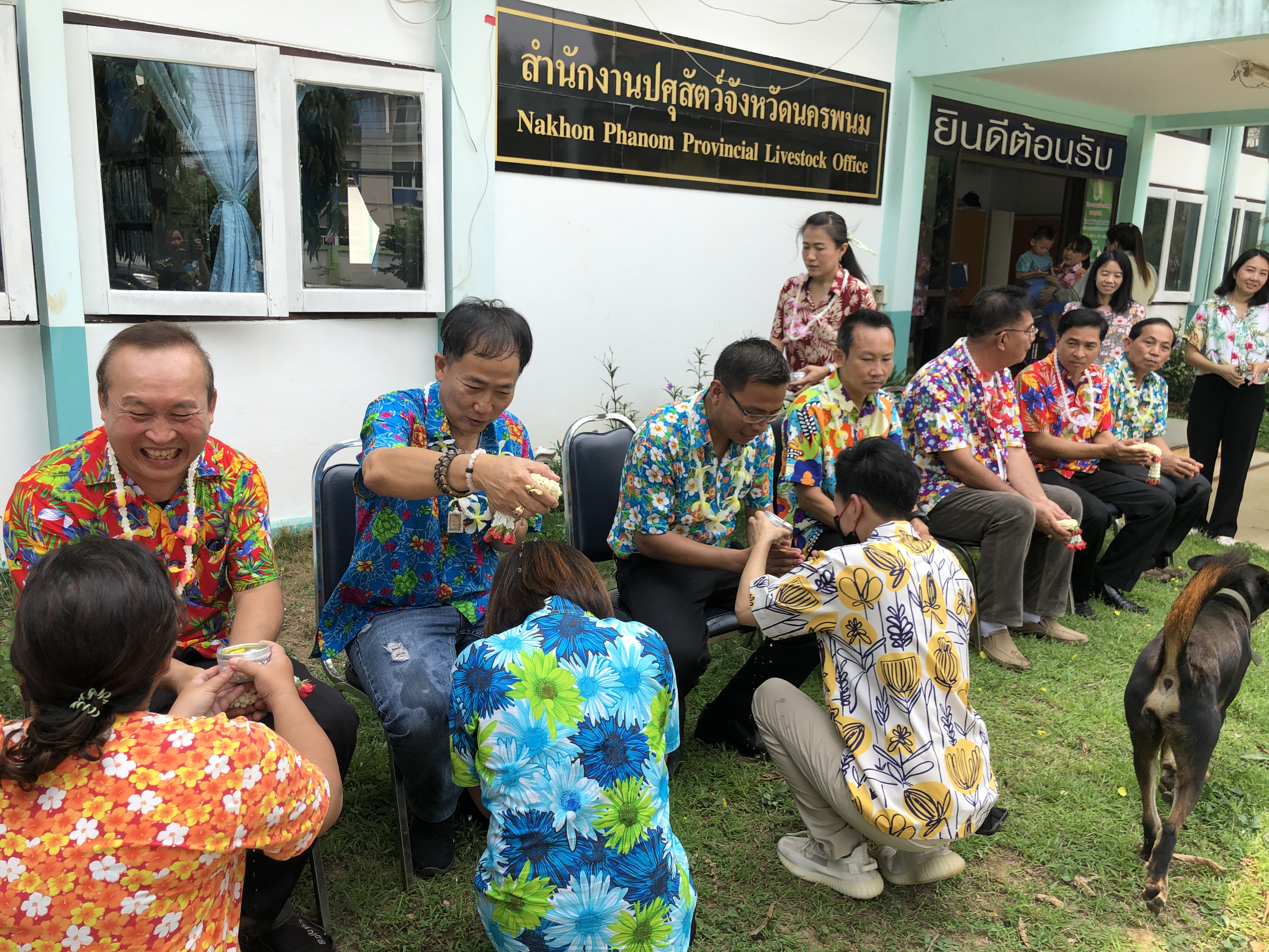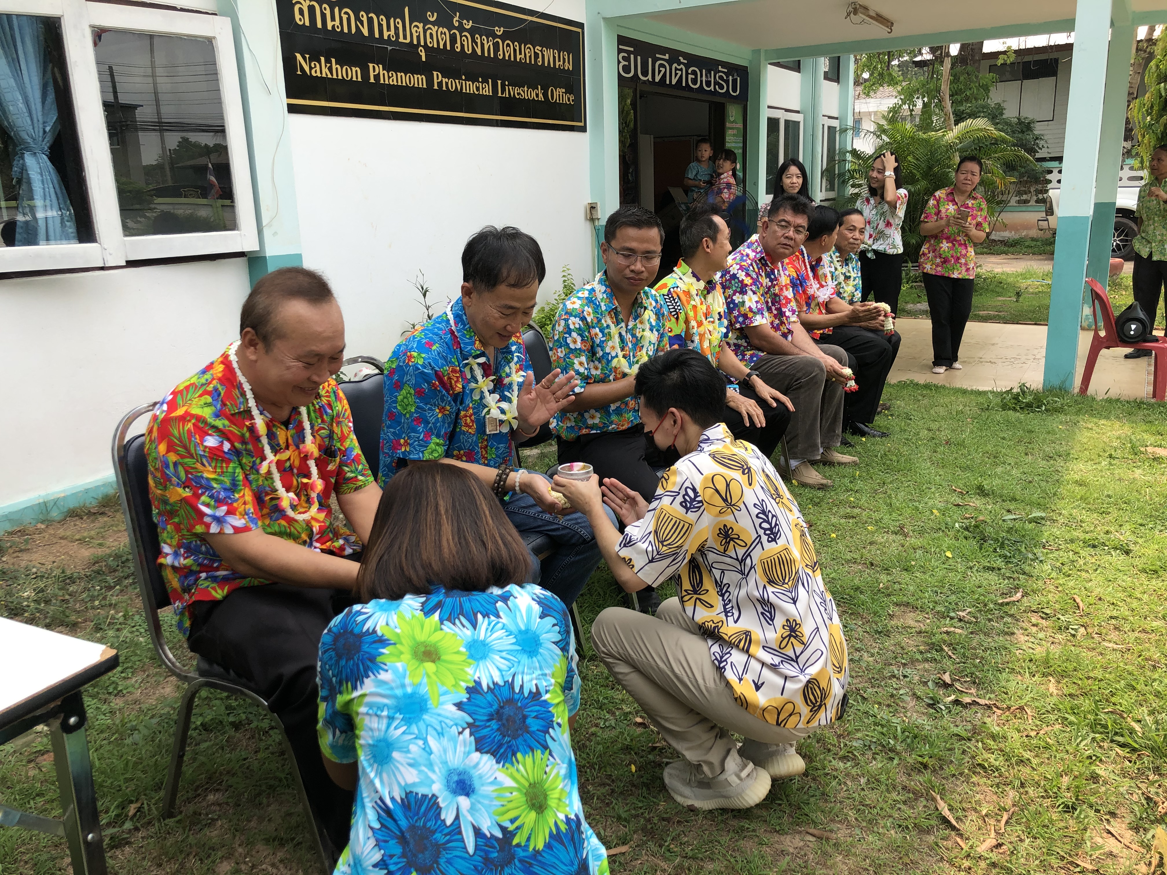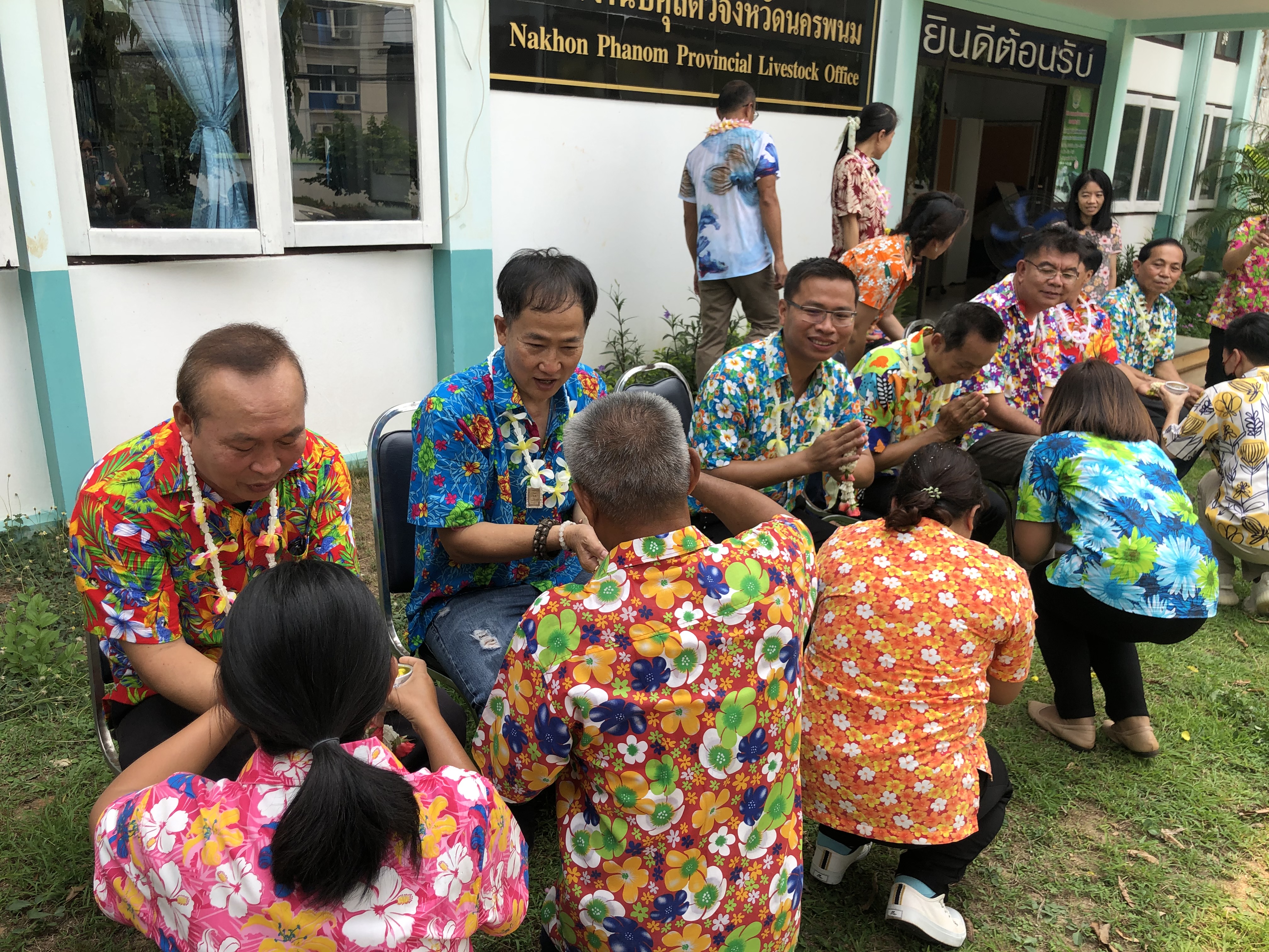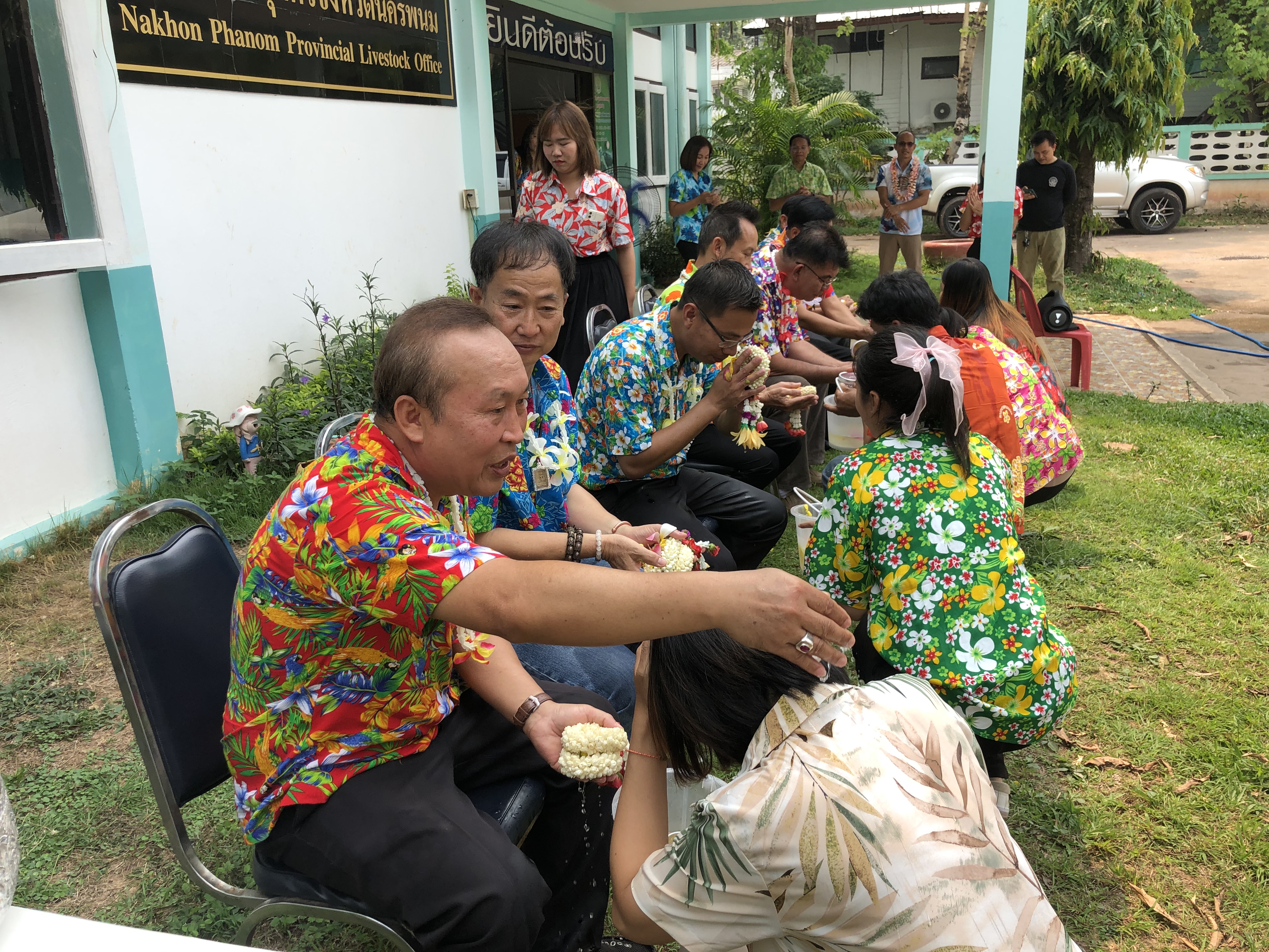 "ปศุสัตว์นครพนม นำบุคลากรรดน้ำขอพรผู้อาวุโส สืบสานสงกรานต์วิถีไทย"