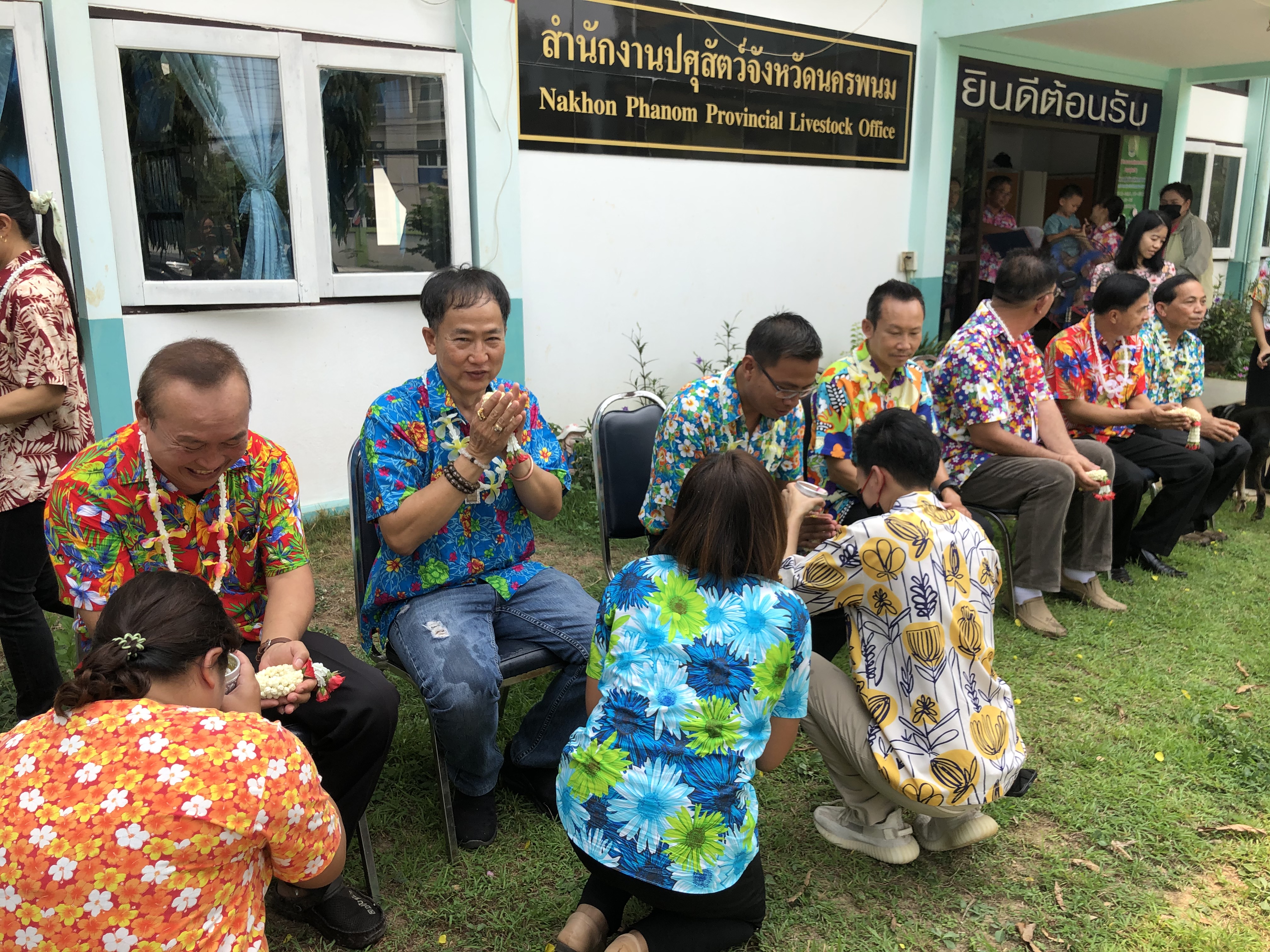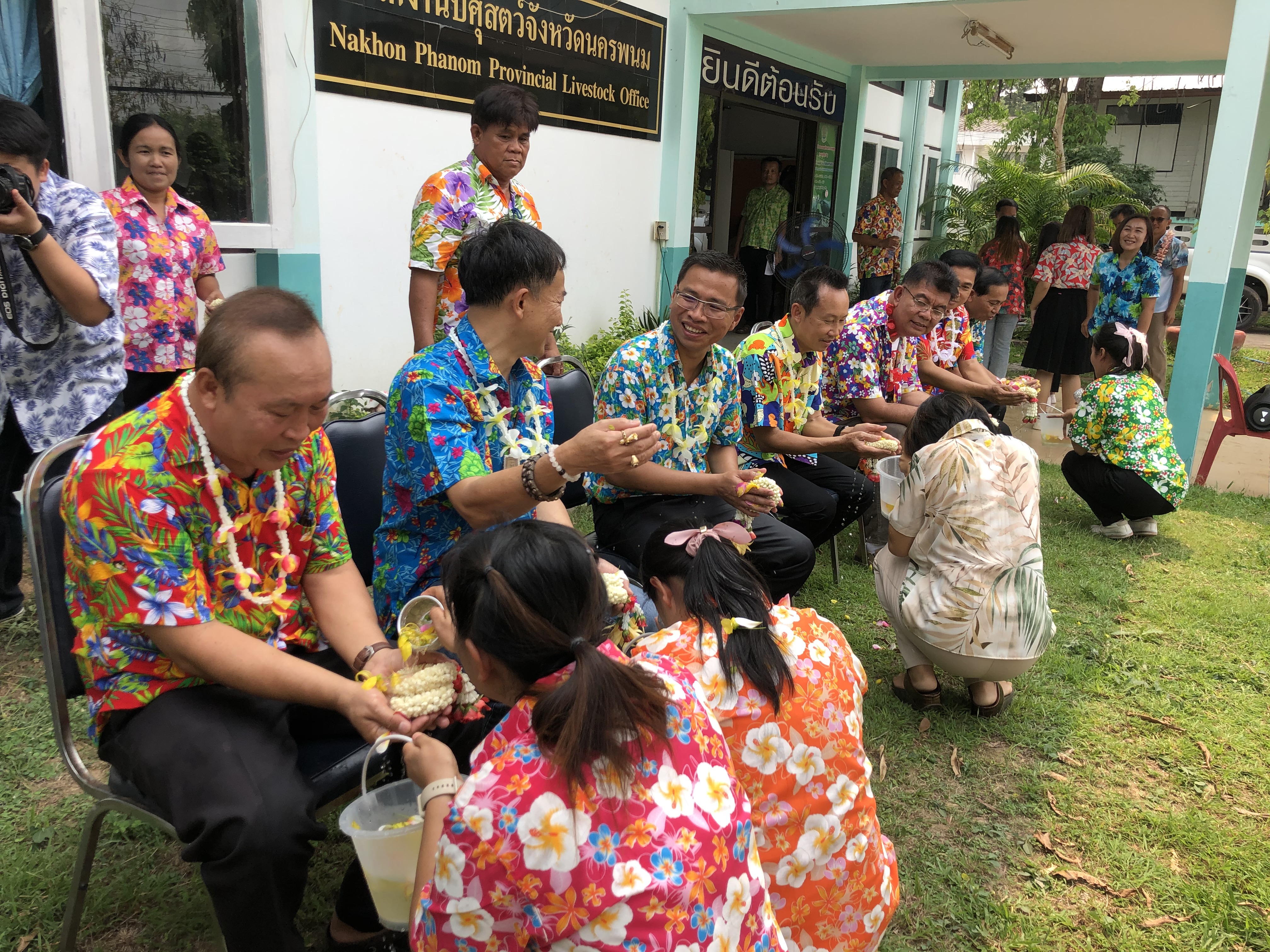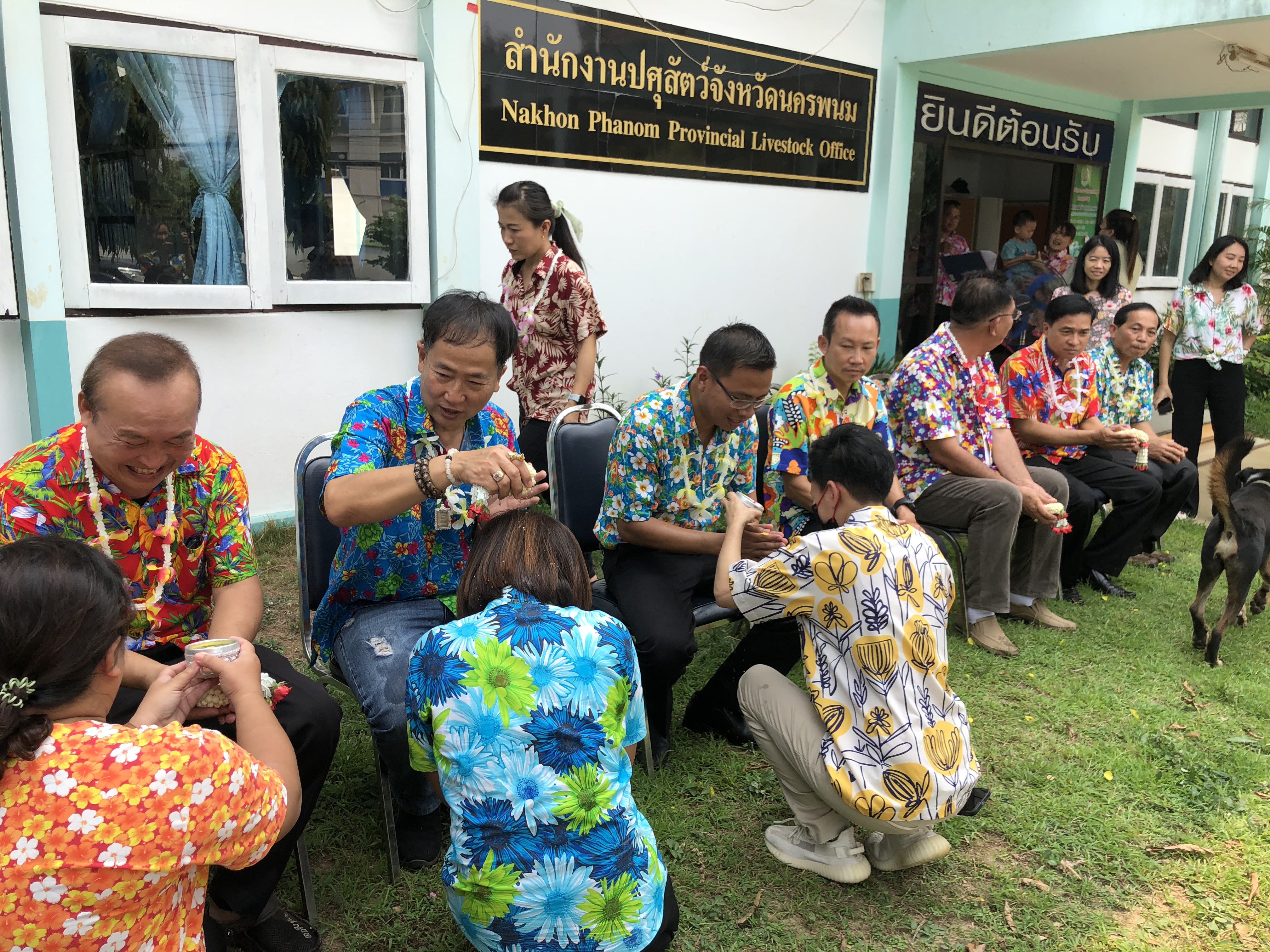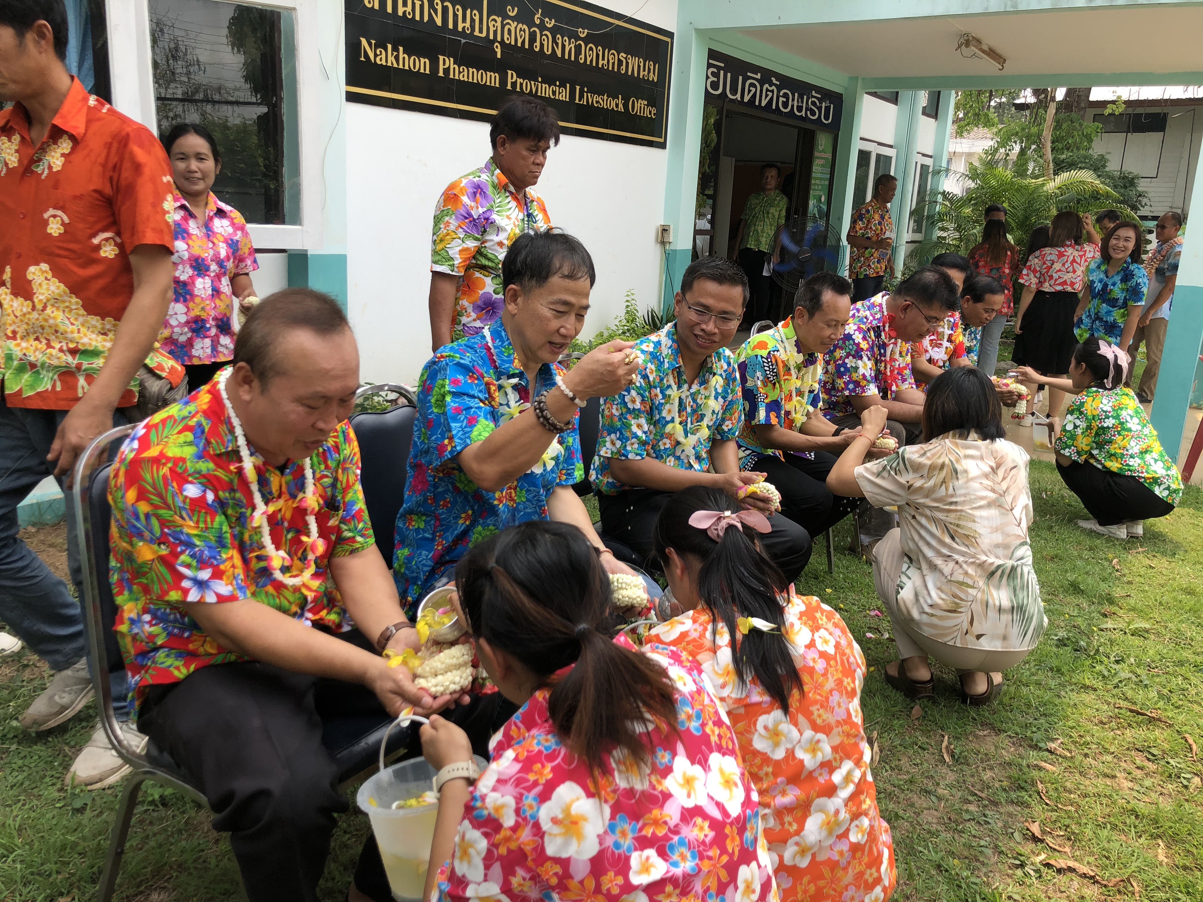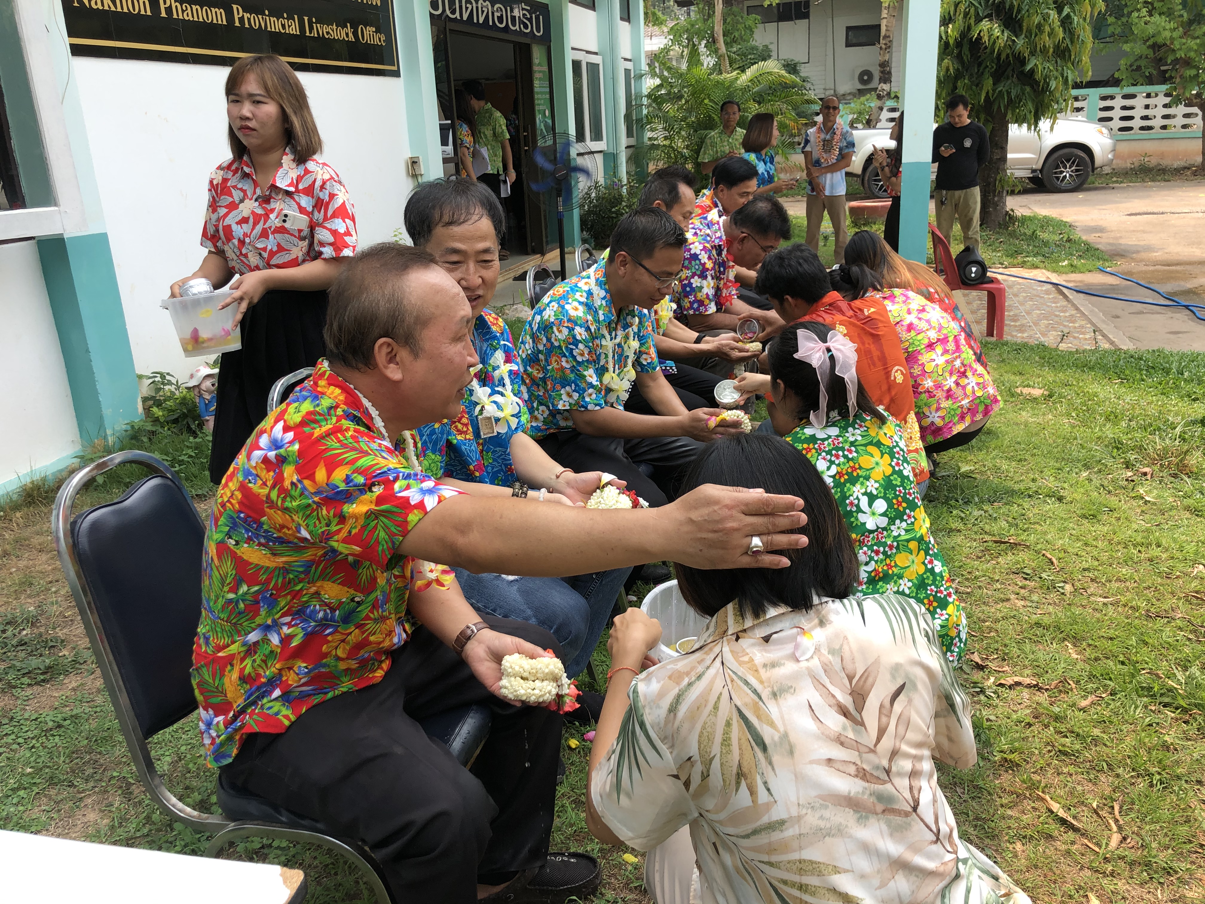 "ปศุสัตว์นครพนม นำบุคลากรรดน้ำขอพรผู้อาวุโส สืบสานสงกรานต์วิถีไทย"