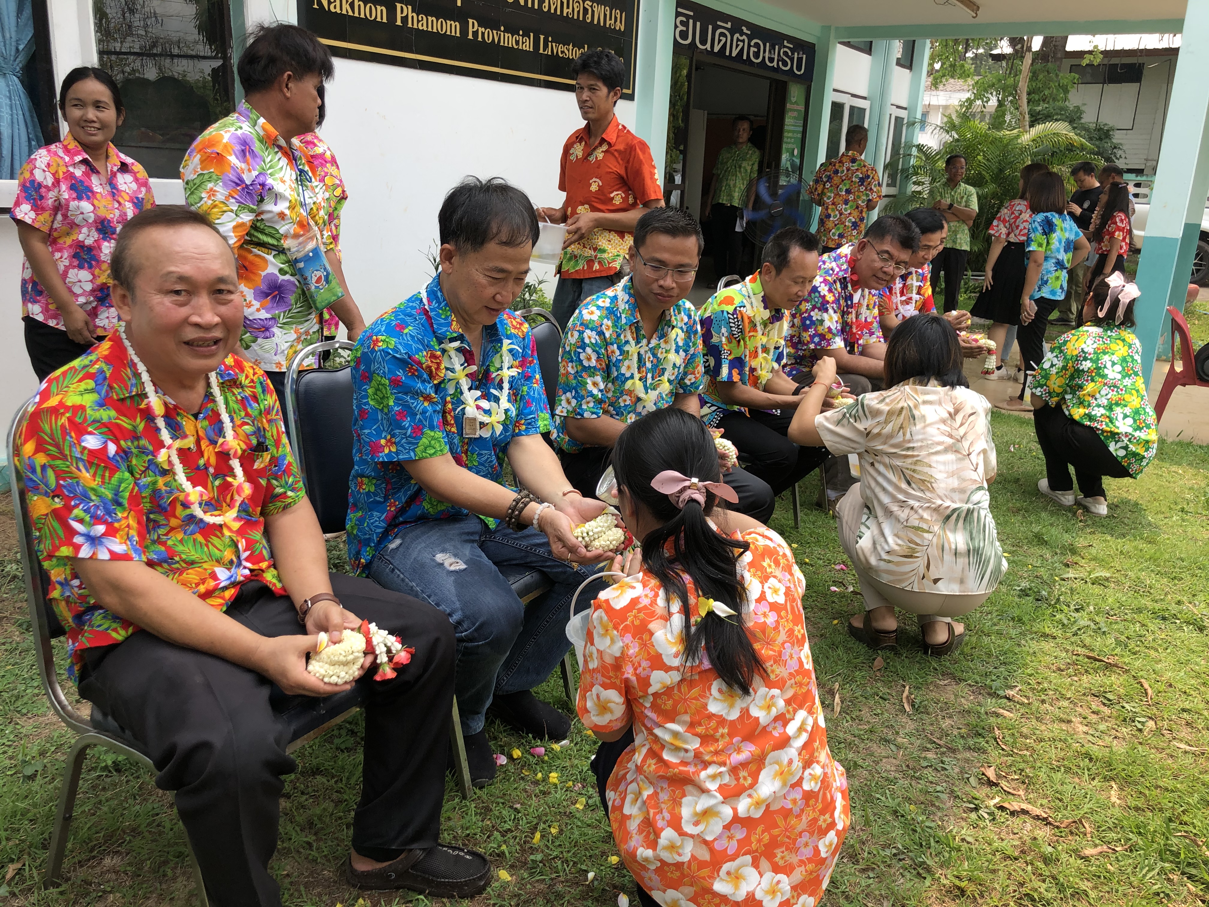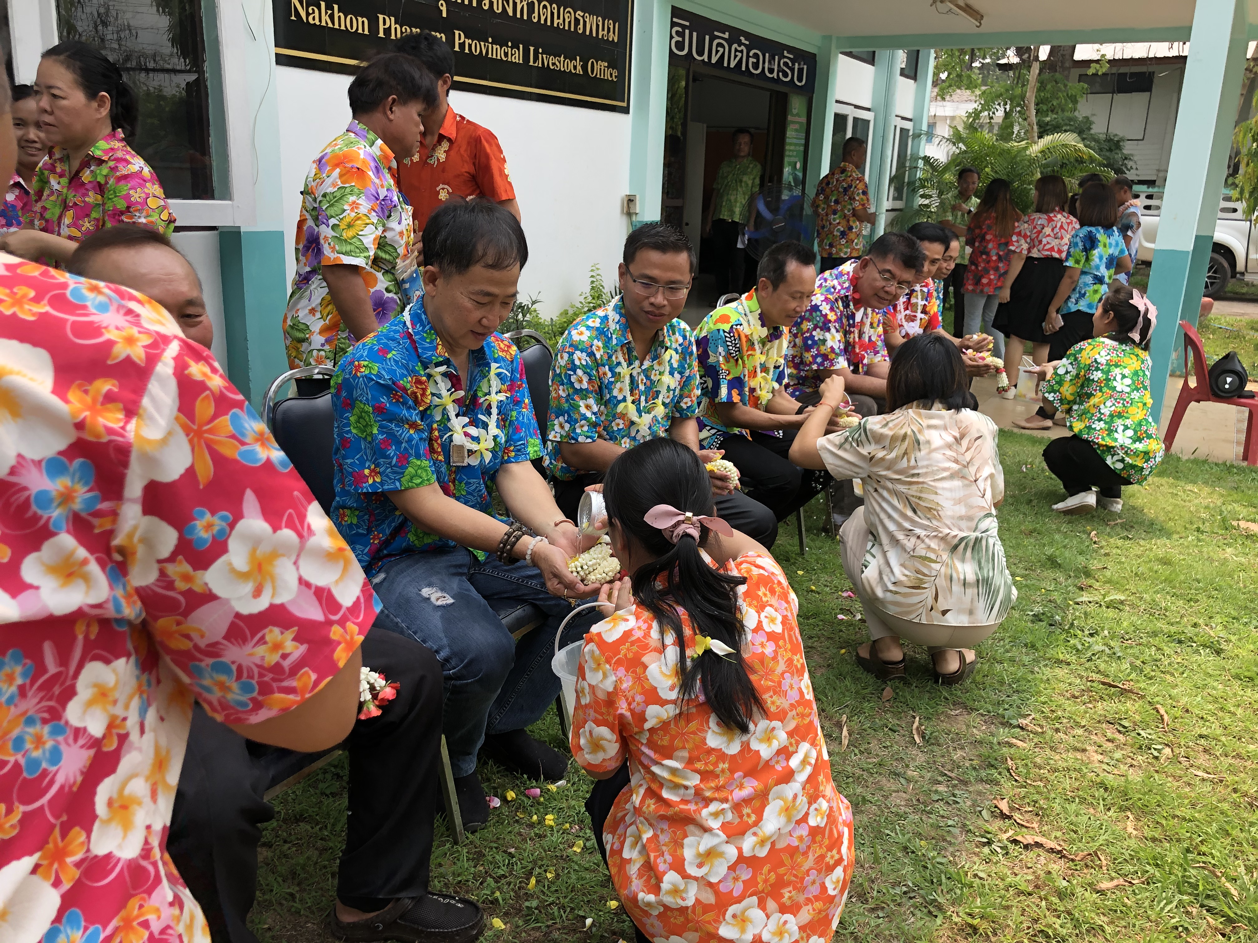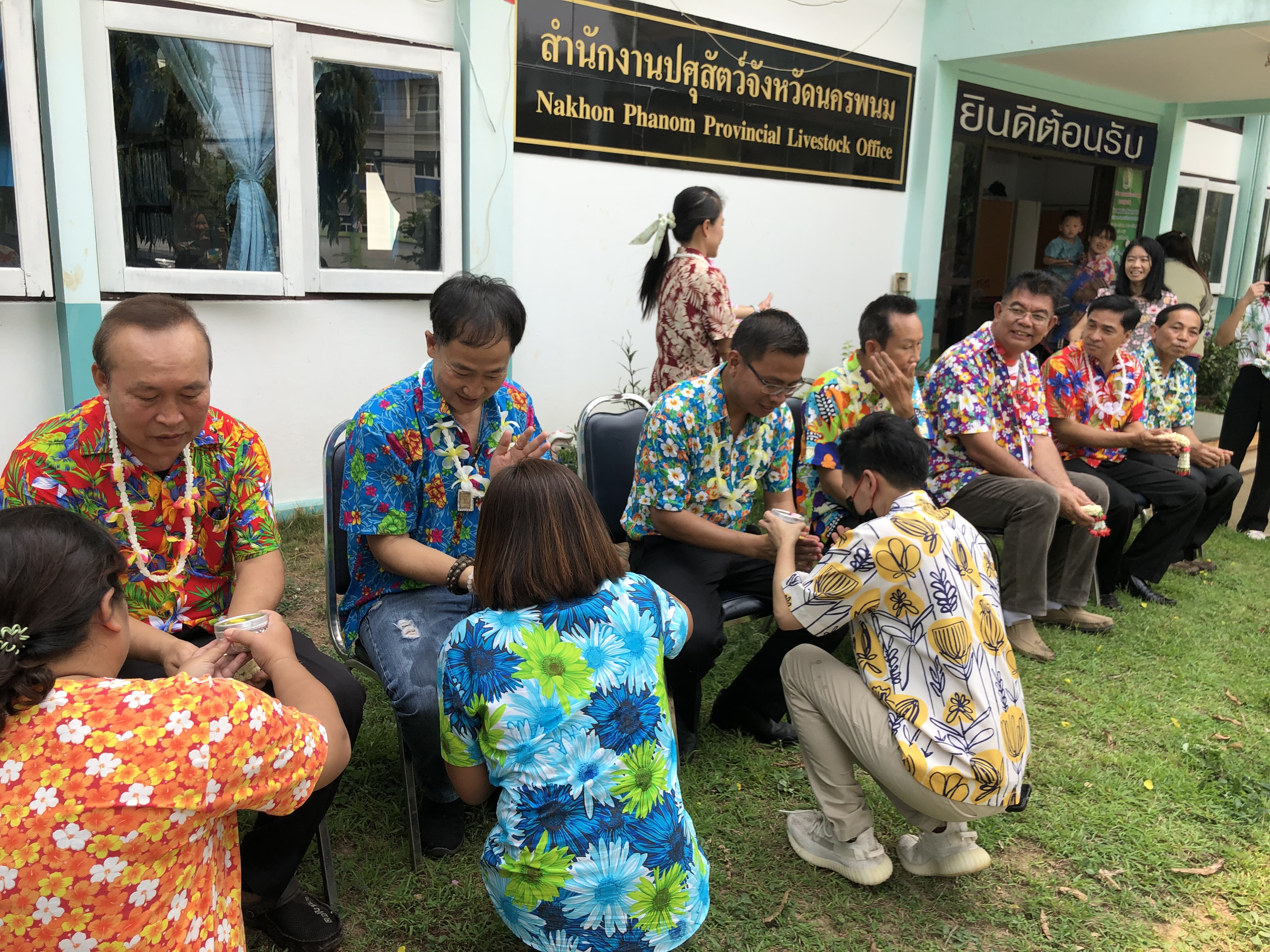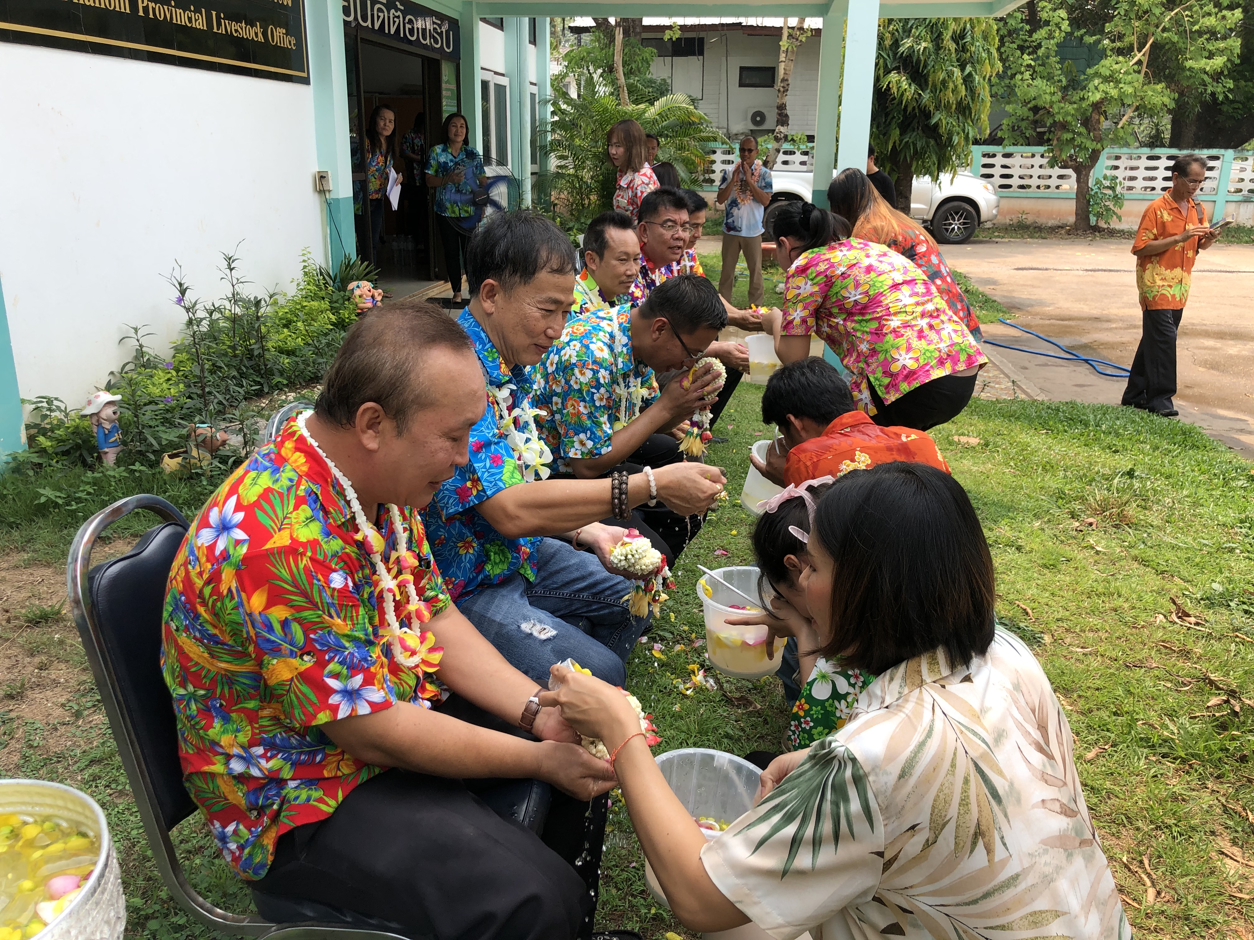 "ปศุสัตว์นครพนม นำบุคลากรรดน้ำขอพรผู้อาวุโส สืบสานสงกรานต์วิถีไทย"