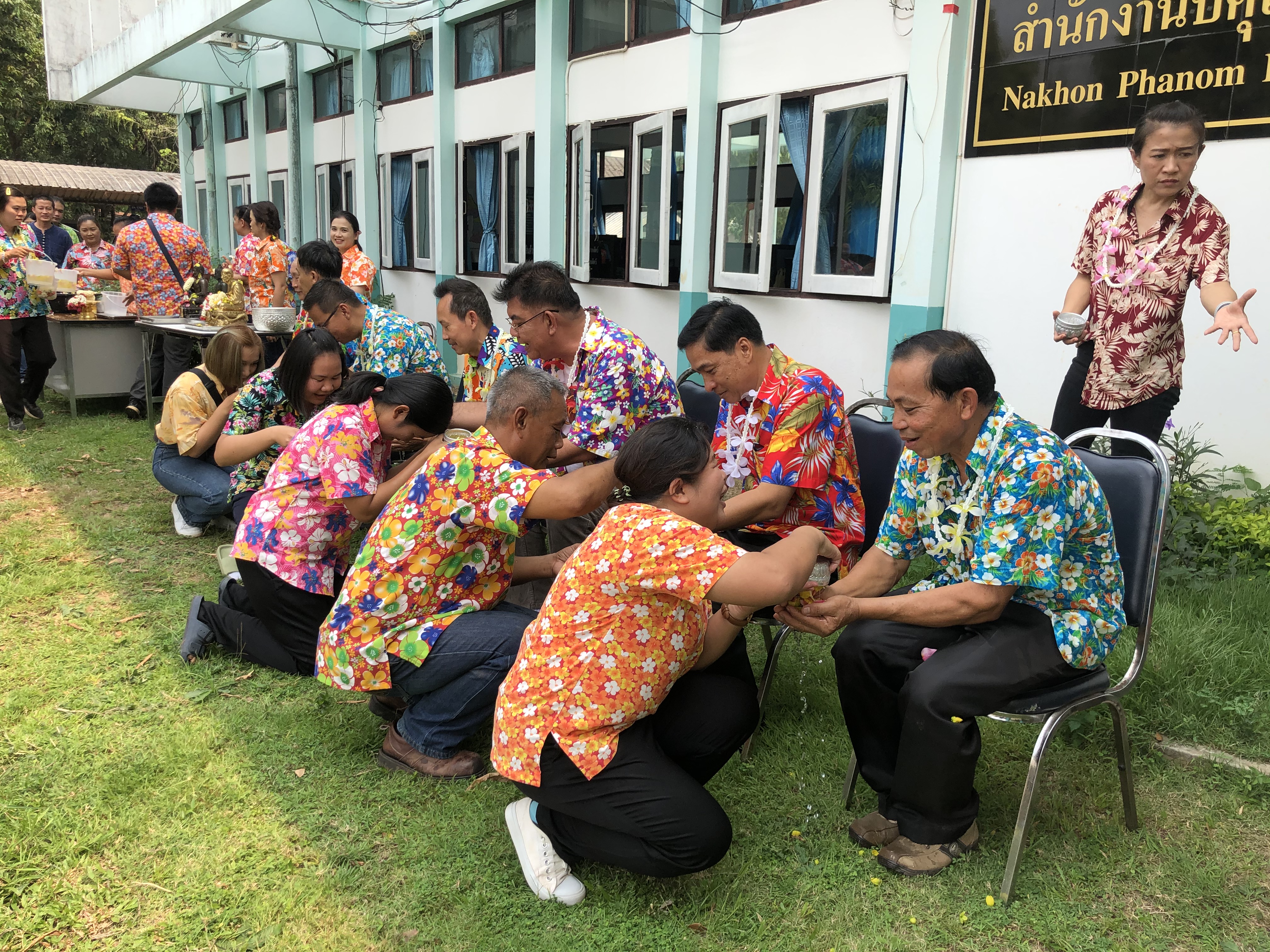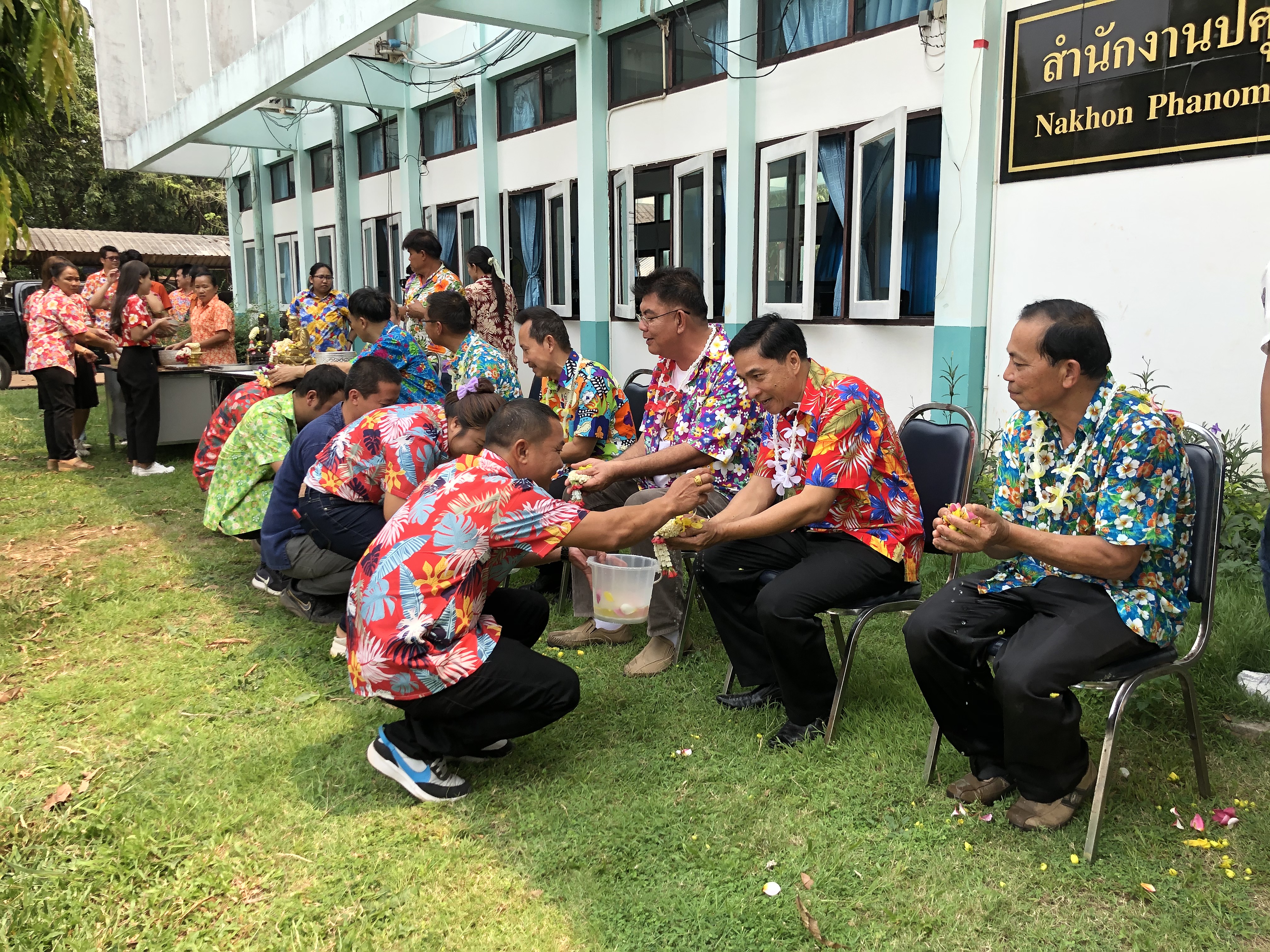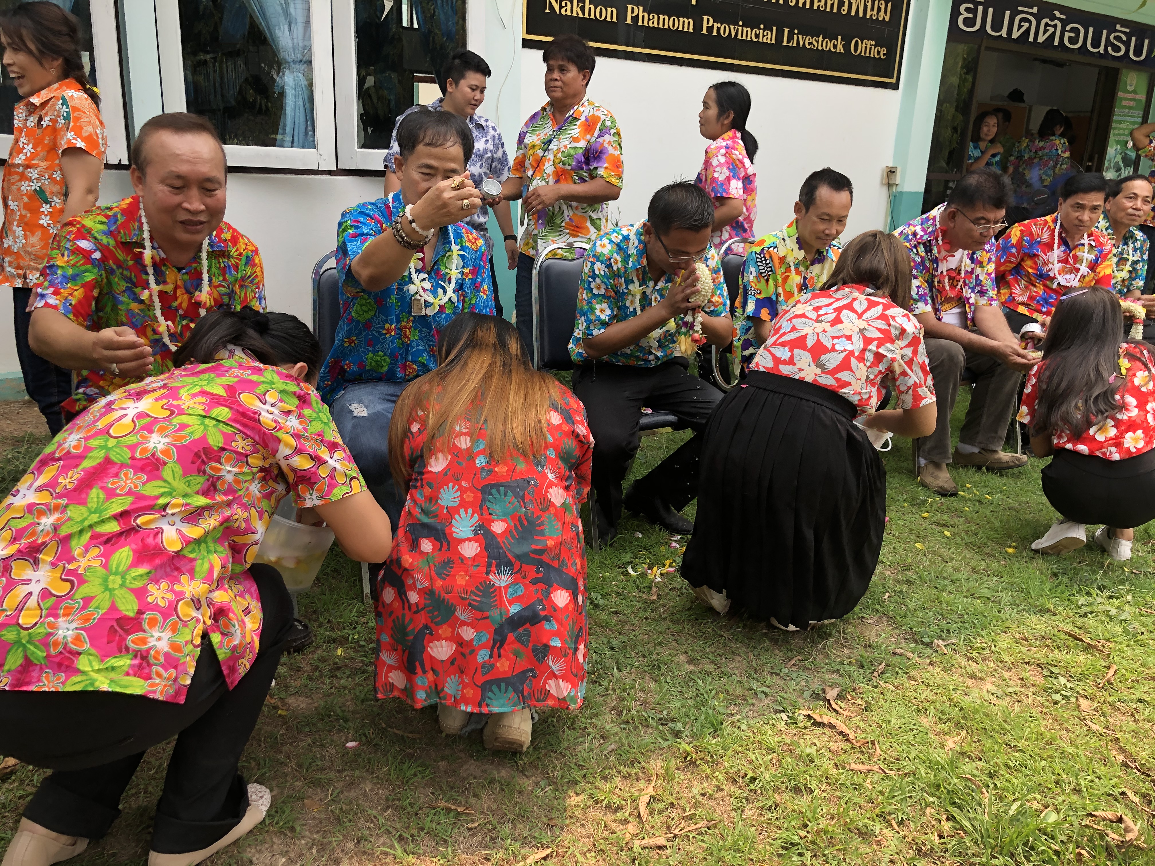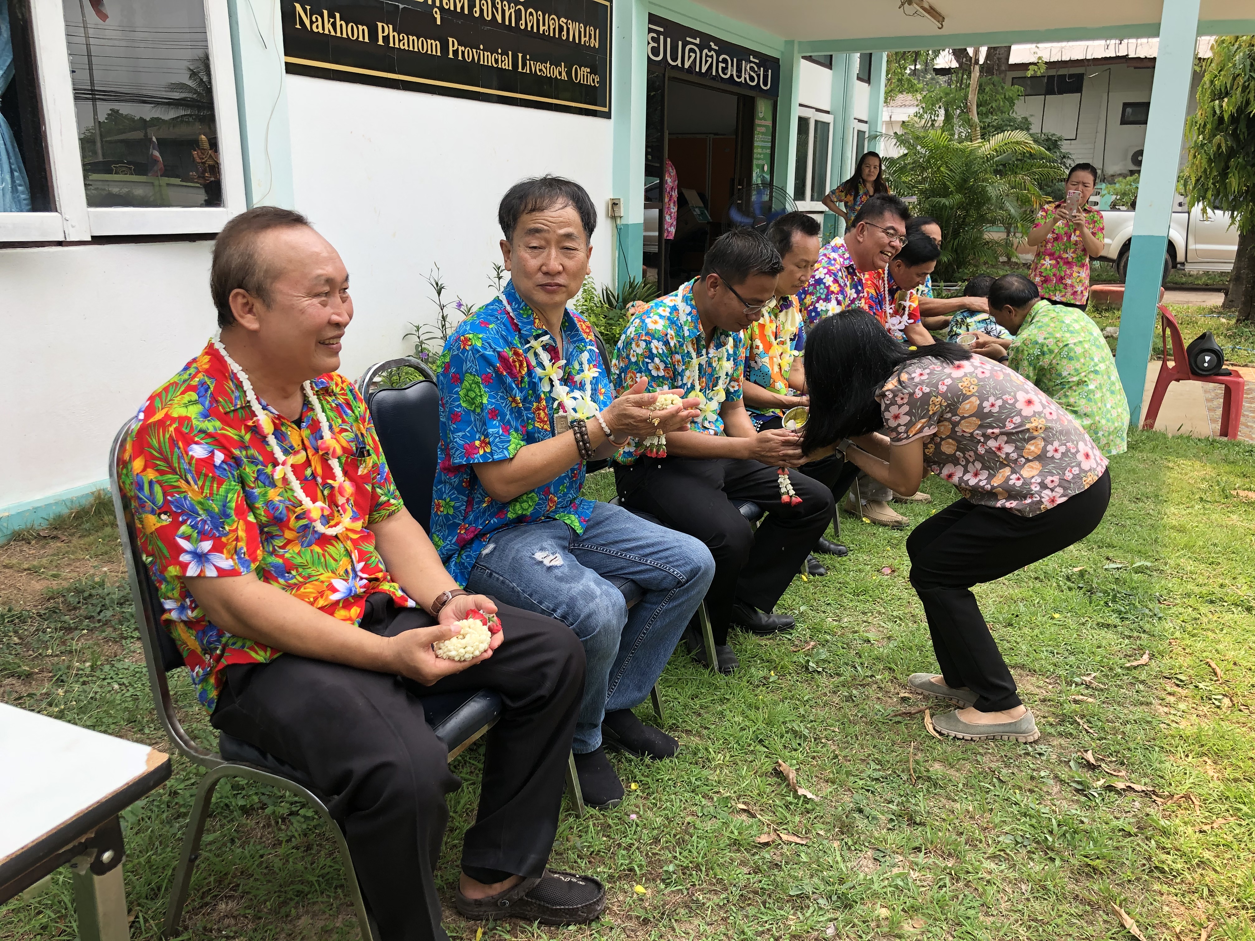 "ปศุสัตว์นครพนม นำบุคลากรรดน้ำขอพรผู้อาวุโส สืบสานสงกรานต์วิถีไทย"